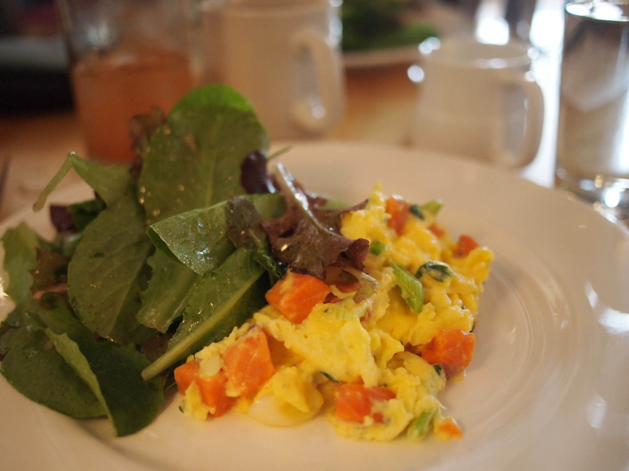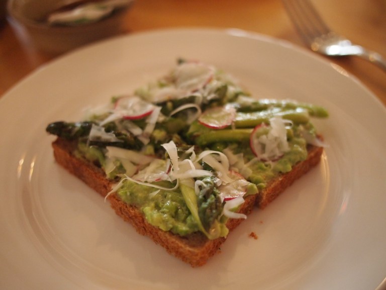 I ordered the soft scrambled eggs, smoked steelhead trout, green onions, and crème fraîche. It was hard to distinguish between the soft eggs, butter, or possibly tiny soft bunnies. Seriously the softest, most delicate eggs ever. The trout was not overwhelming in flavor, and actually could have been one or two puffs smokier. The greens on the side were nice and vinegary- a great compliment to the creamy eggs.