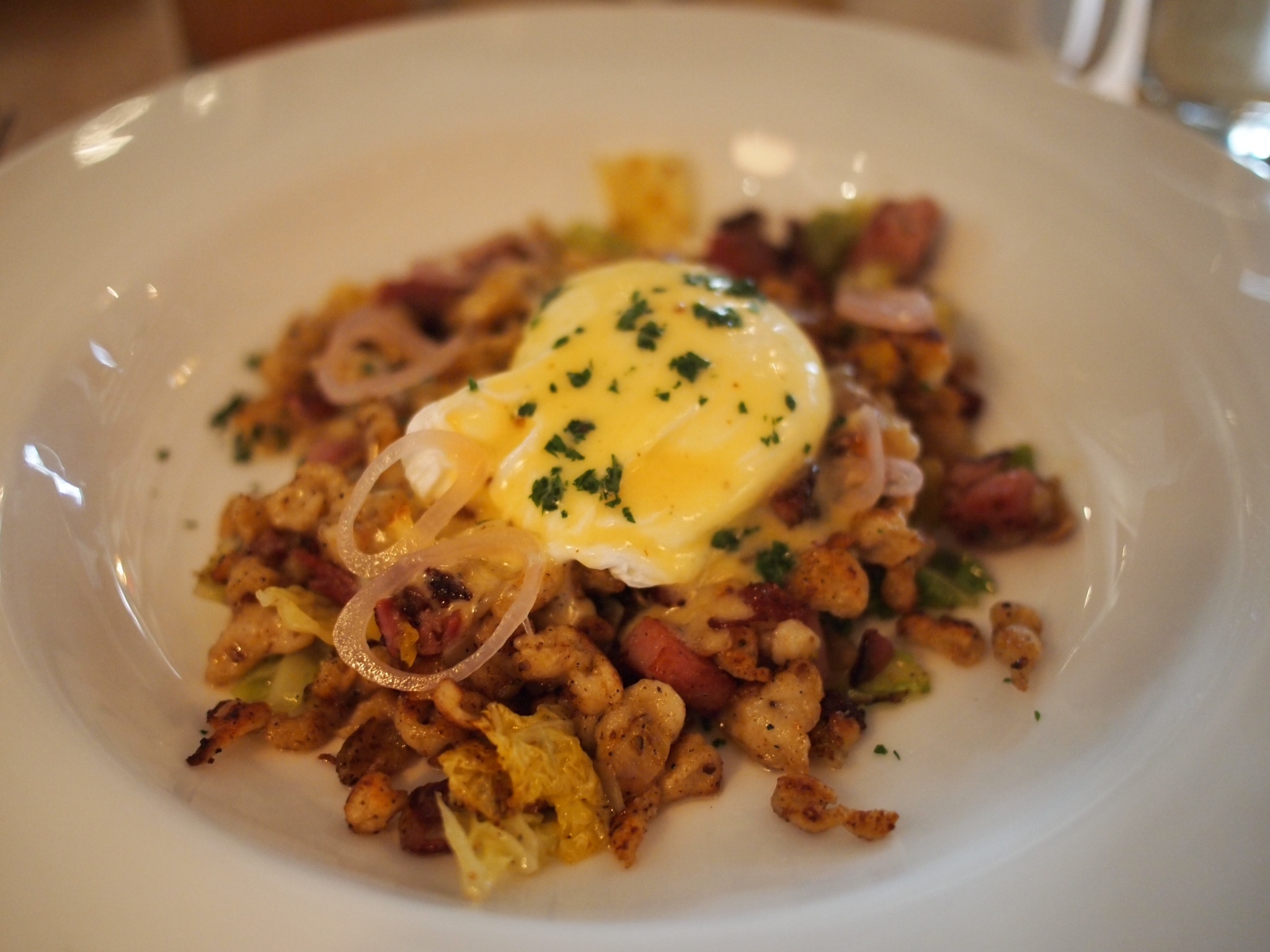 Moving on to the tale of main course- yes- we kept eating. Forks were flying furiously around the table onto other peoples’ plates. (We’re down with OPP). The dish that everyone was eager to try was the Rye spaetzle pyttipanna, smoked pork shoulder, poached egg, savoy cabbage, caraway hollandaise. And for good reason. It will knock you down and catch you at the same time. Smokey and stout, creamy and grounding. I will be getting this all to myself next time.